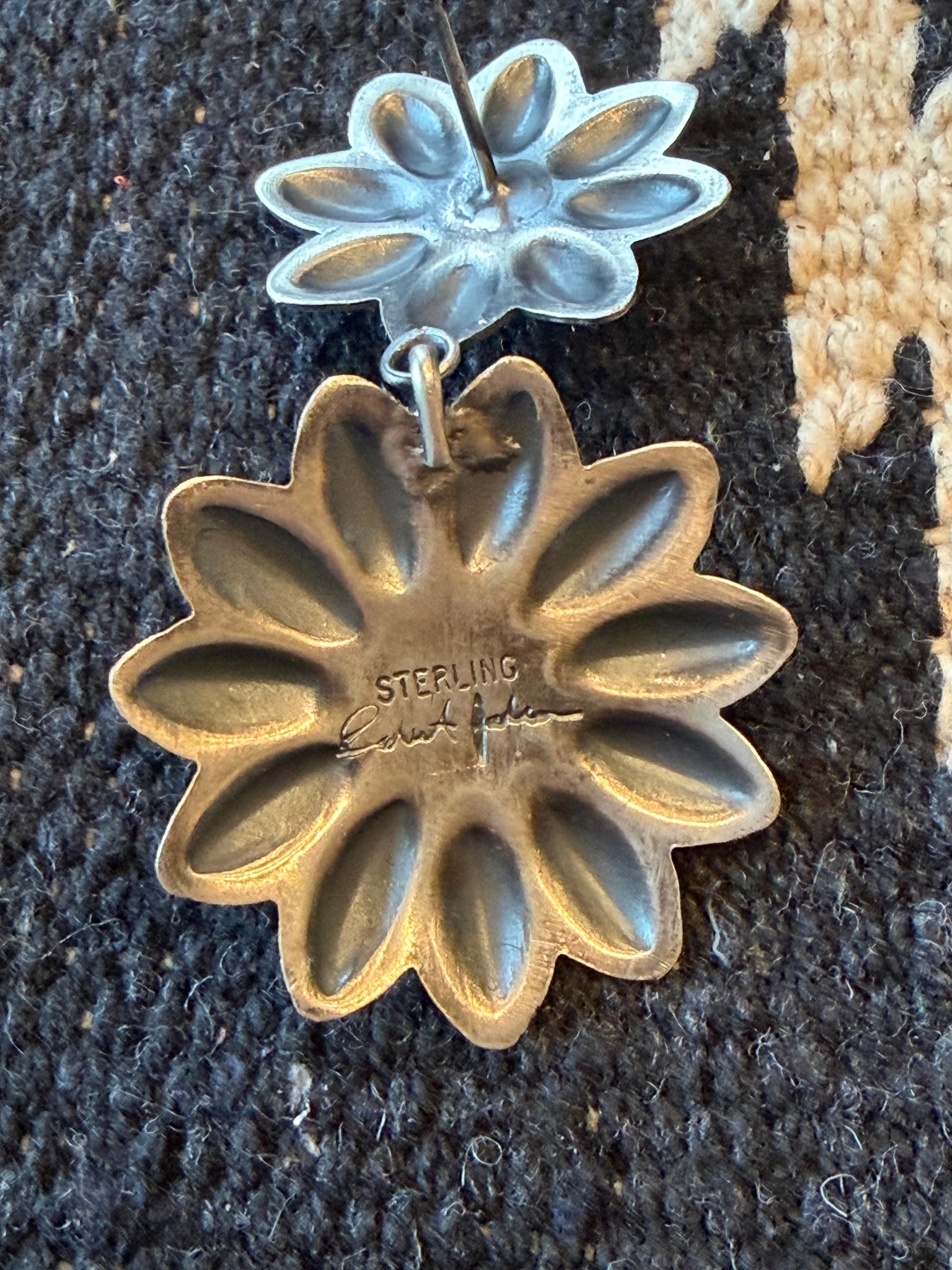 Turquoise & Orange Spiny Concho Dangle Earrings – Handmade Sterling Silver by Robert Johnson