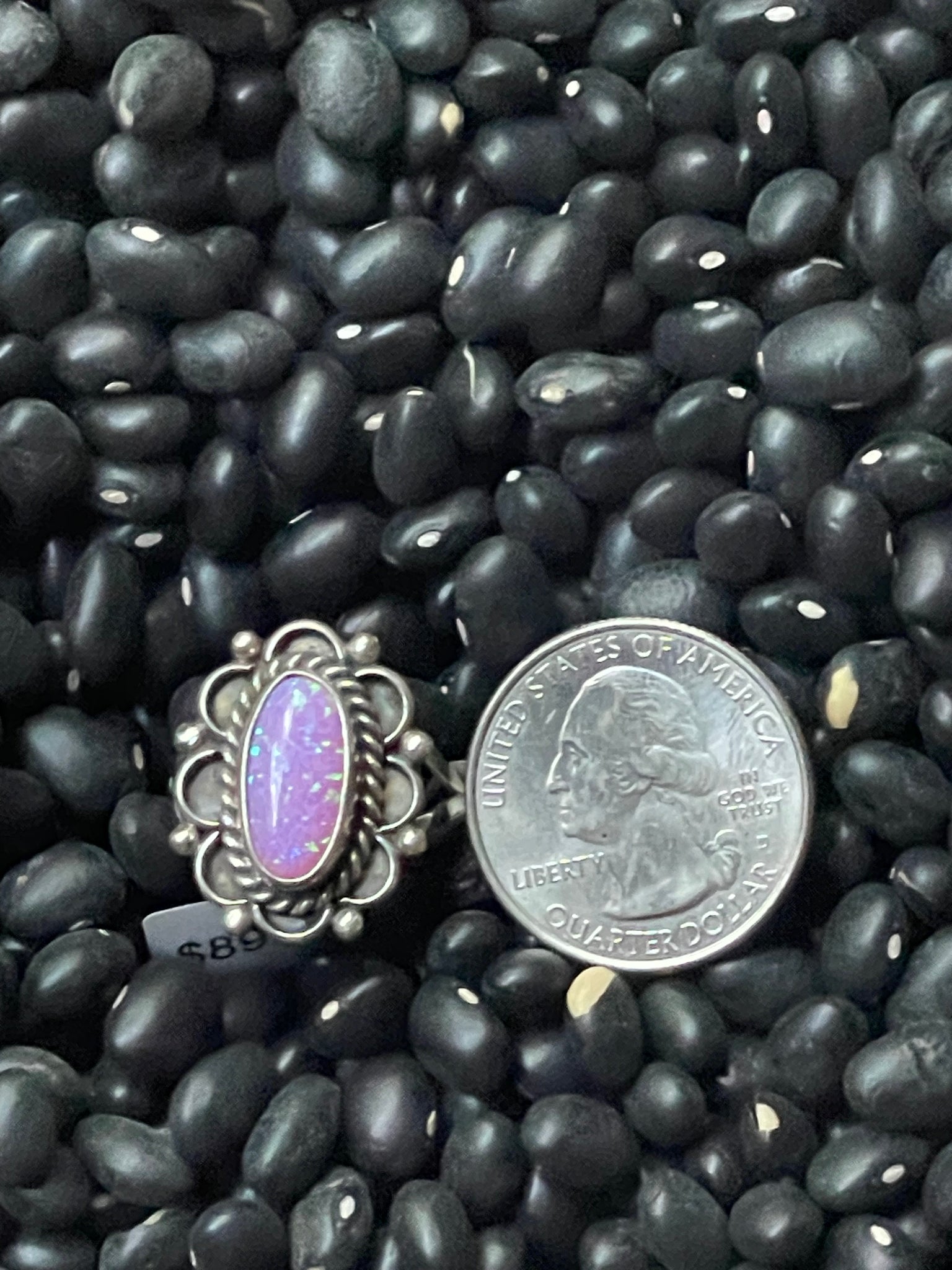 Pink Lab Opal Sterling Silver Ring by Priscilla Smith - Size 8