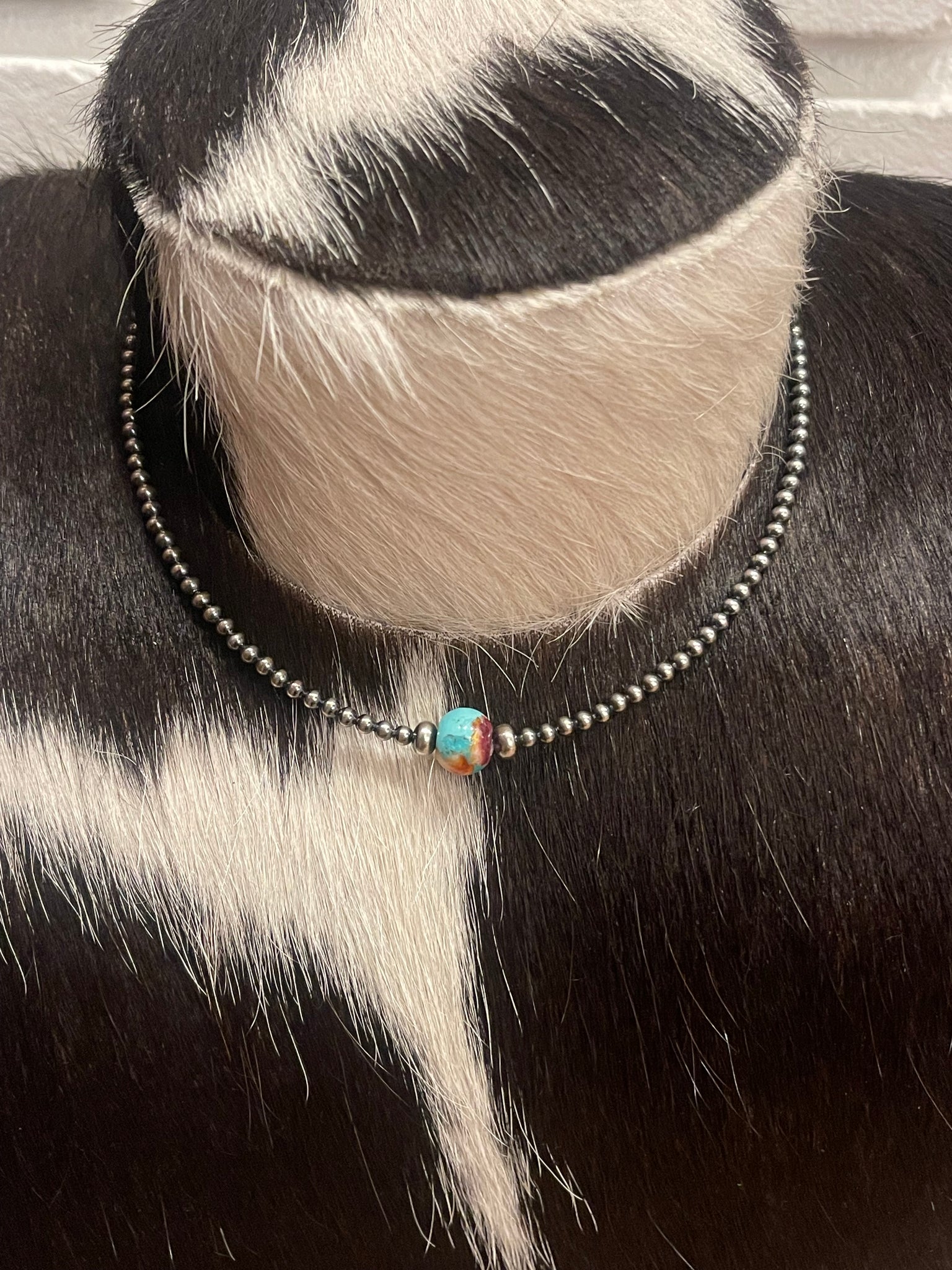 14-Inch Sterling Silver Pearl & Mojave Bead Choker