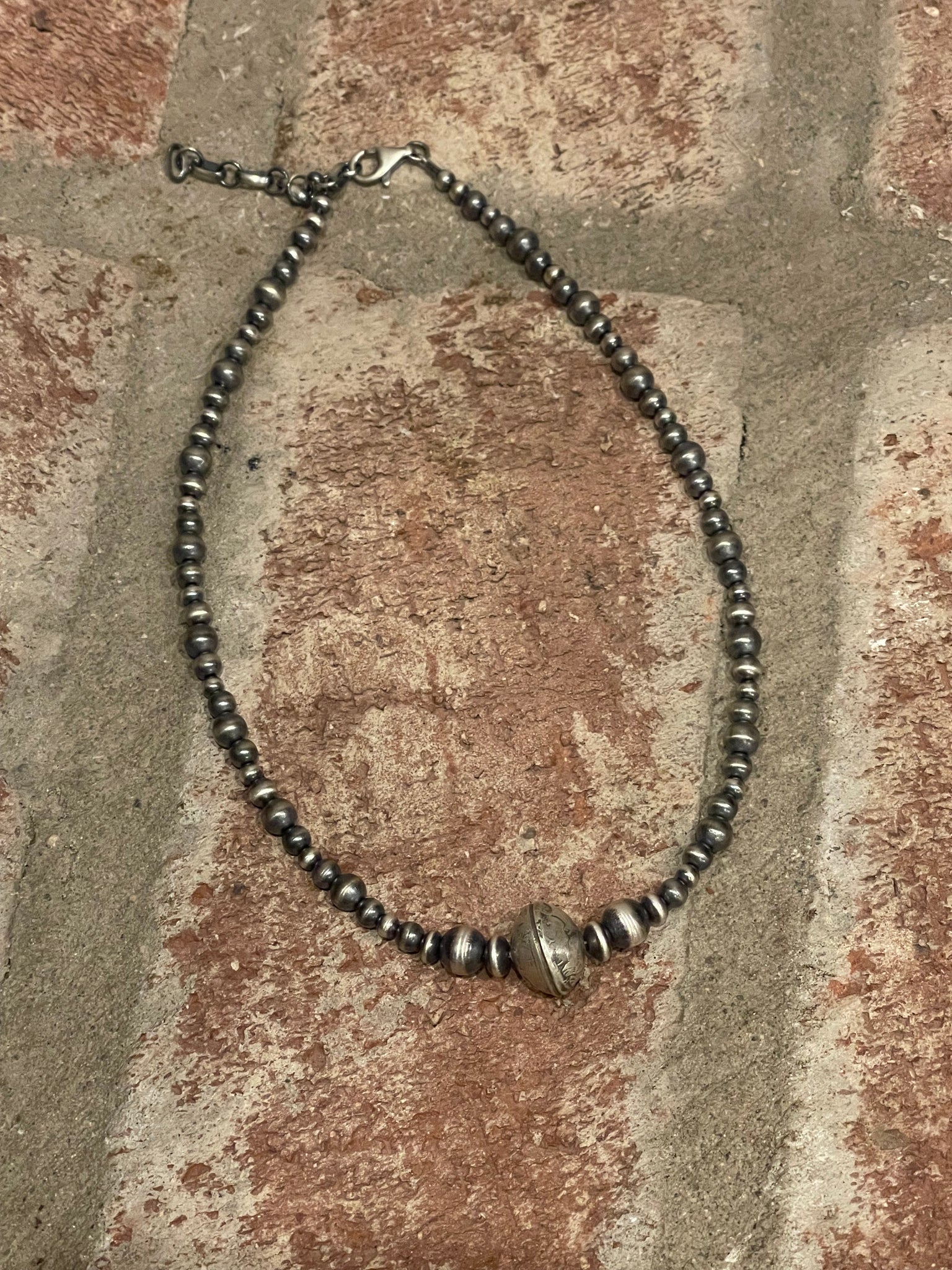 Sterling silver machine made beads with a handmade saucer mercury dime pearl.